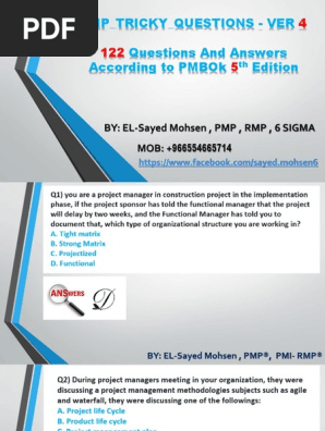 122 Pmp Tricky Questions Sayed Mohsen Project Management Professional Business