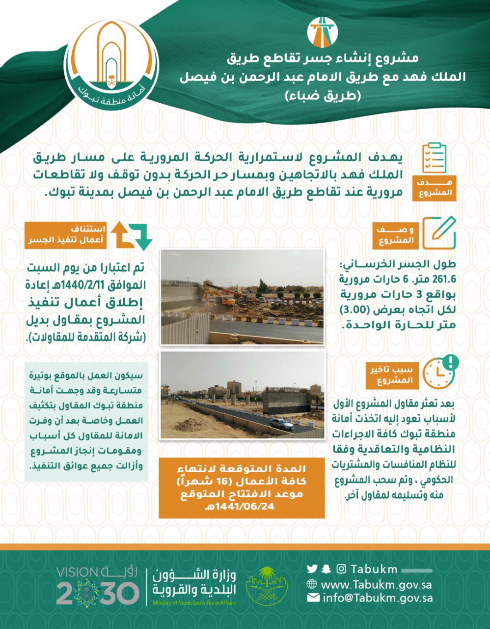 أمانة منطقة تبوك On Twitter أنهت أمانة منطقة تبوك إجراءات سحب مشروع إنشاء جسر تقاطع طريق الملك فهد مع طريق الإمام عبد الرحمن بن فيصل طريق ضباء من المقاول المتعثر إلى مقاول